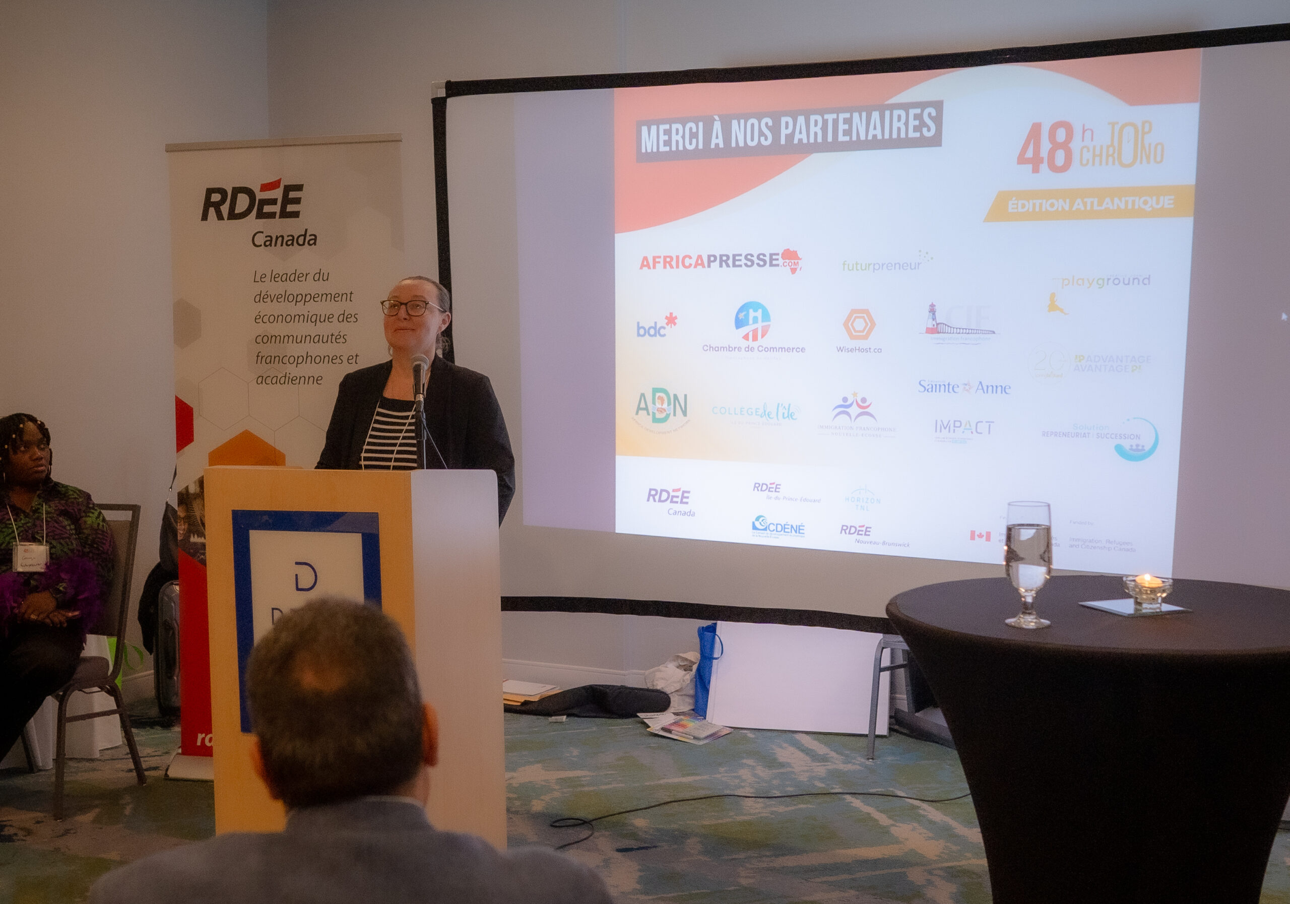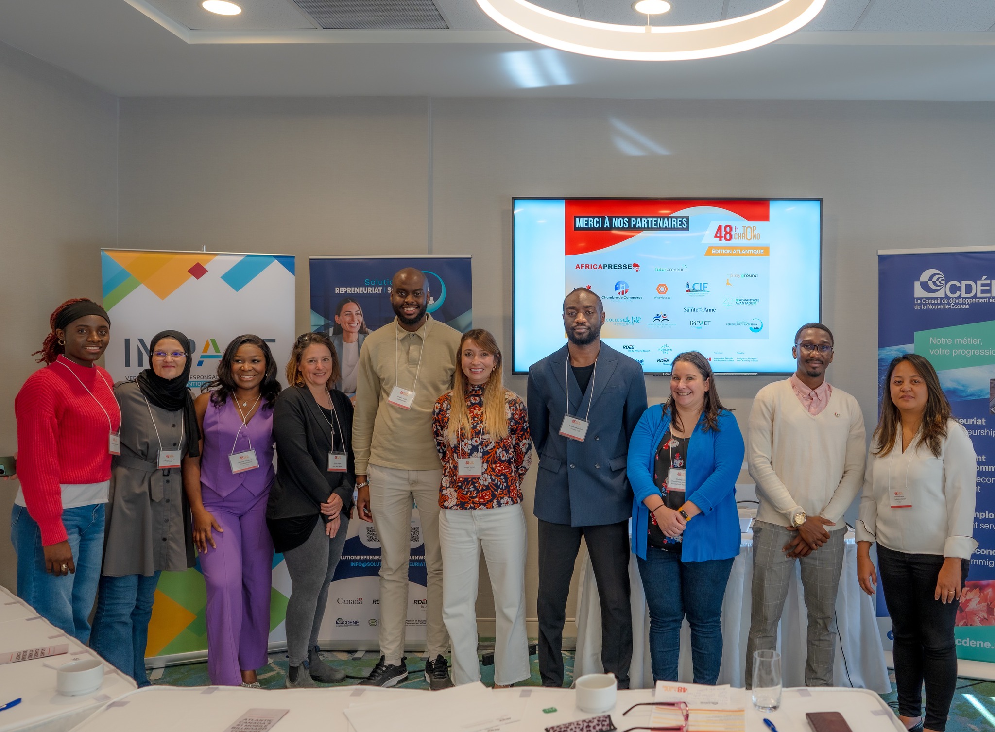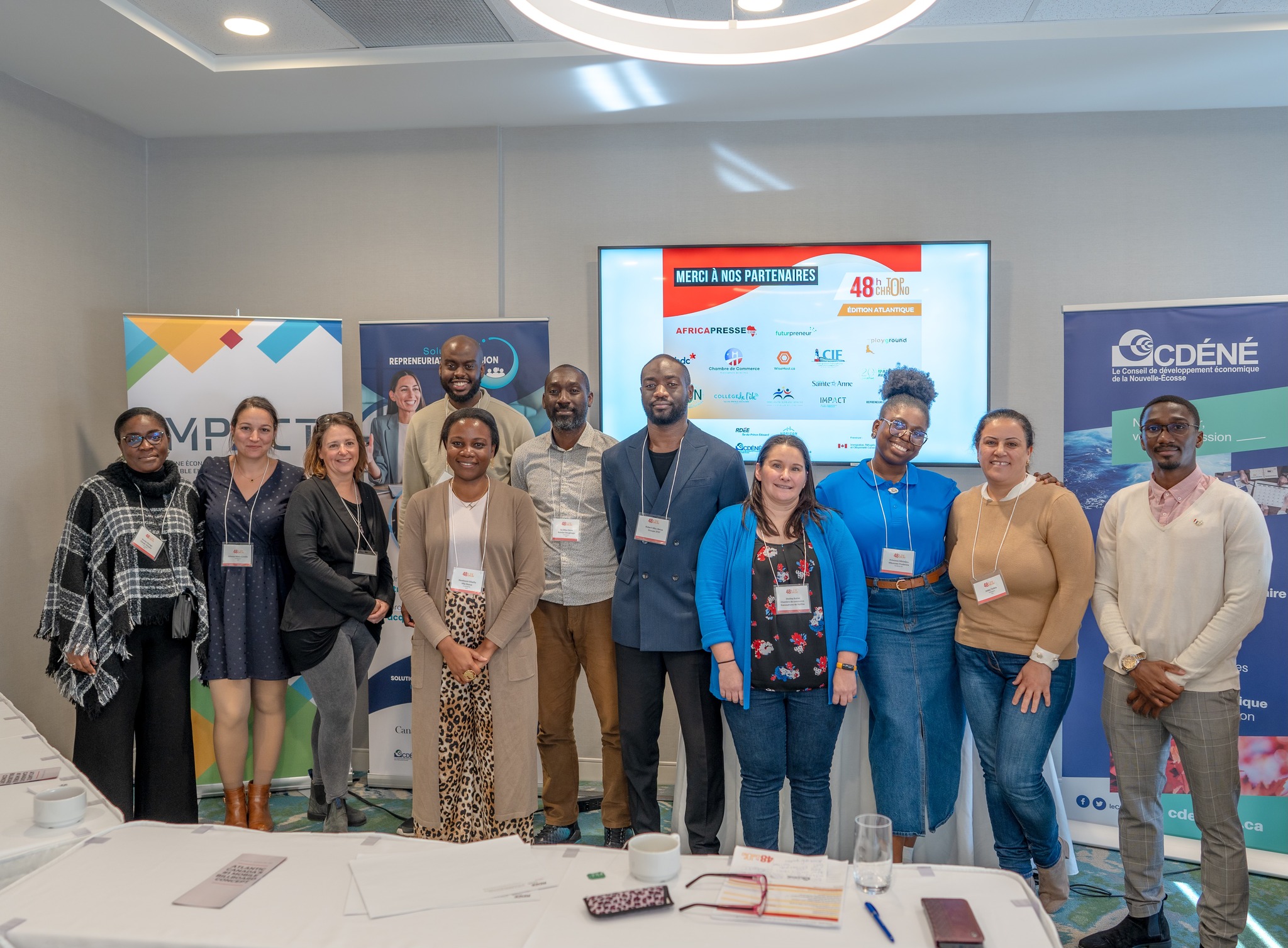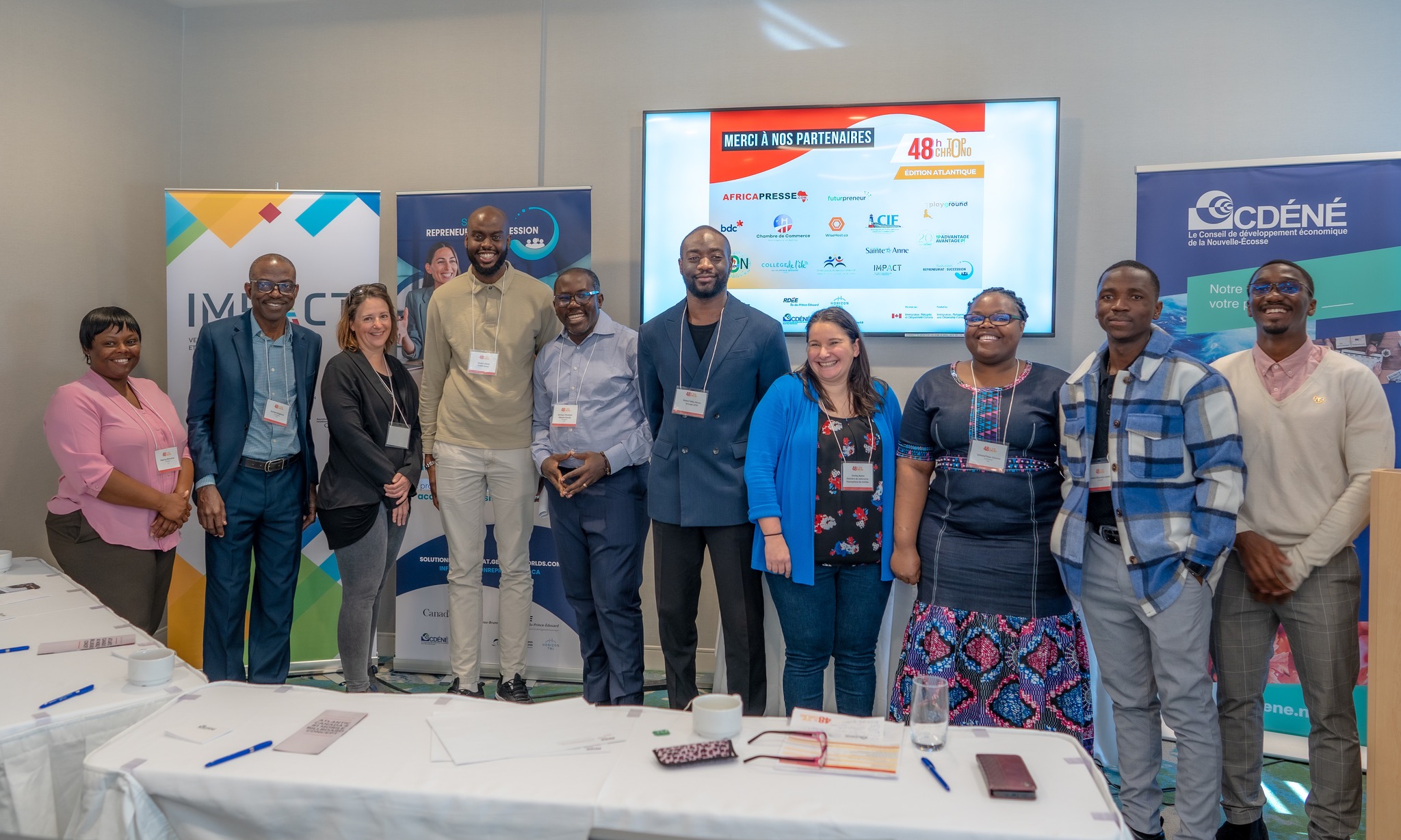Le RDÉE Canada tient à remercier chaleureusement tous ses partenaires et collaborateurs qui ont rendu cette compétition possible. Nous remercions tout particulièrement le Conseil de développement économique de la Nouvelle-Écosse, Horizon TNL, RDÉE Nouveau-Brunswick, et RDÉE Île-du-Prince-Édouard Inc., pour leur soutien exceptionnel à l’organisation de cet événement. Nous sommes également reconnaissants envers Africapresse, Futurpreneur, BDC, la Chambre de commerce francophone d’Halifax, WiseHost, Africa Development Network, Playground Creative Agency, la Coopérative d’intégration francophone de l’Î.-P.-É., Université Sainte-Anne, Avantage PI Atlantique, Collège de l’Île, Immigration Francophone Nouvelle-Écosse, Projet Impact, Solution Repreneuriat, ainsi que Immigration, Réfugiés et Citoyenneté Canada (IRCC).